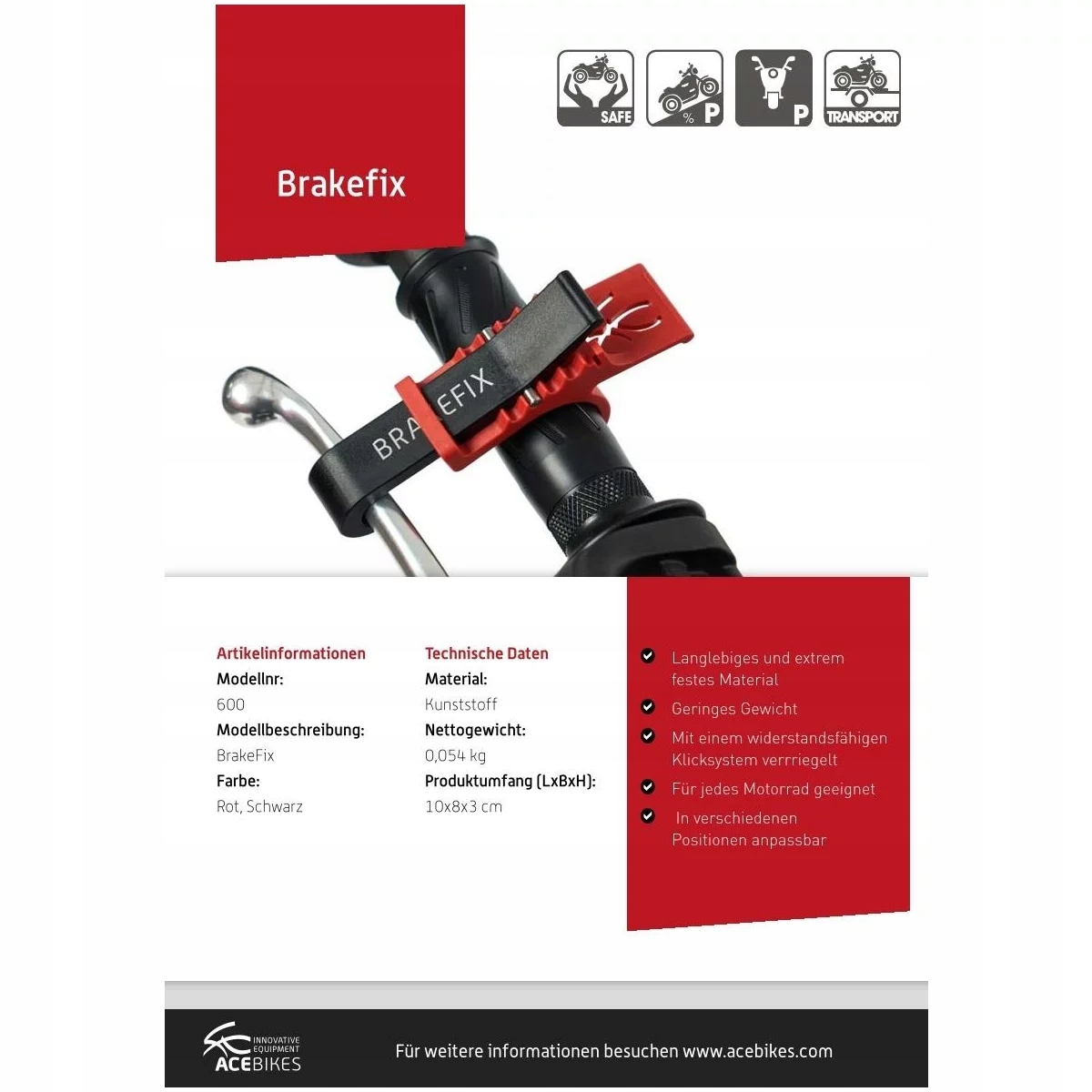 благодаря предположению о блокировке переднего тормоза иммобилизует мотоцикл во время, например, транспорт или парковка в горах.