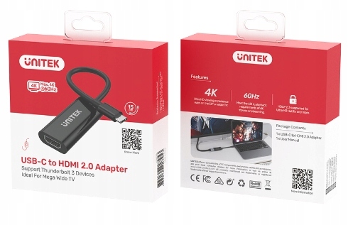 Адаптер Unitek USB-C — HDMI 2.0 4k, 60 Гц