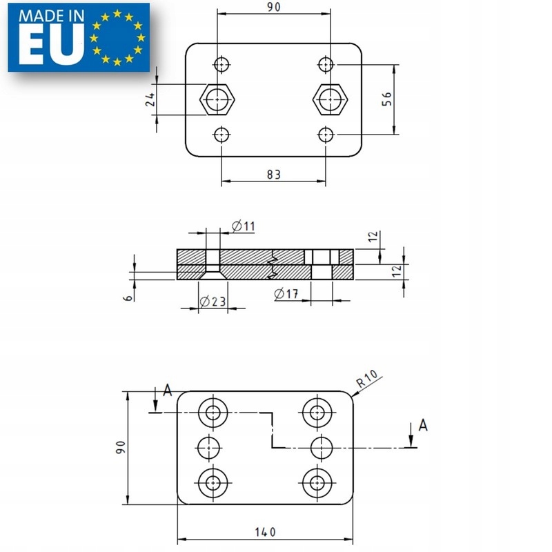 Адаптер предназначен для крепления шара с расстоянием отверстий 90 мм к фаркопу, приспособленному к шару с расстоянием отверстий 83x56 мм, и наоборот.