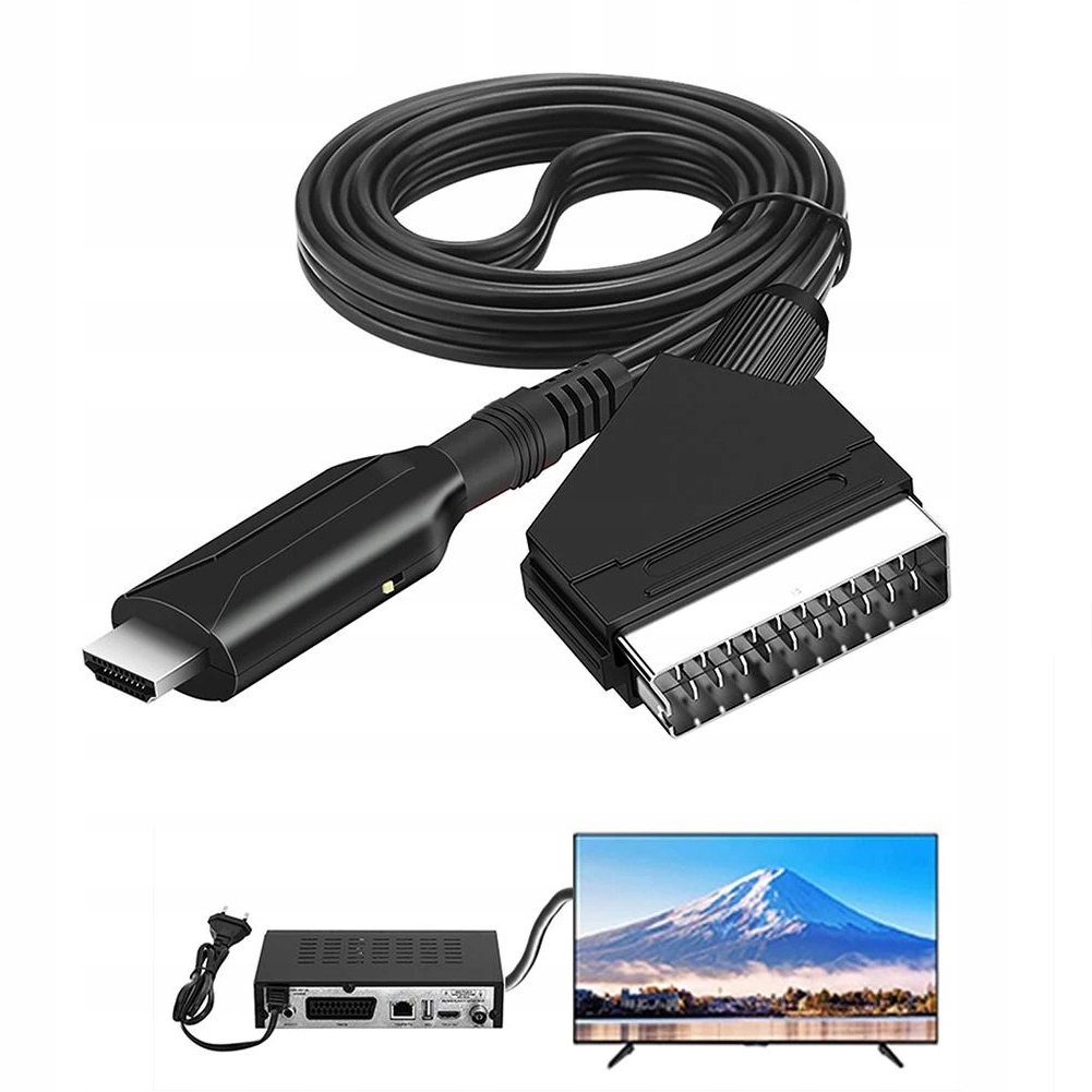 — Этот преобразователь, совместимый с HDMI в Scart, предназначен для одновременного преобразования входного сигнала HDMI, совместимого с SCART HDMI, а также видео- и аудиовыхода Scart.