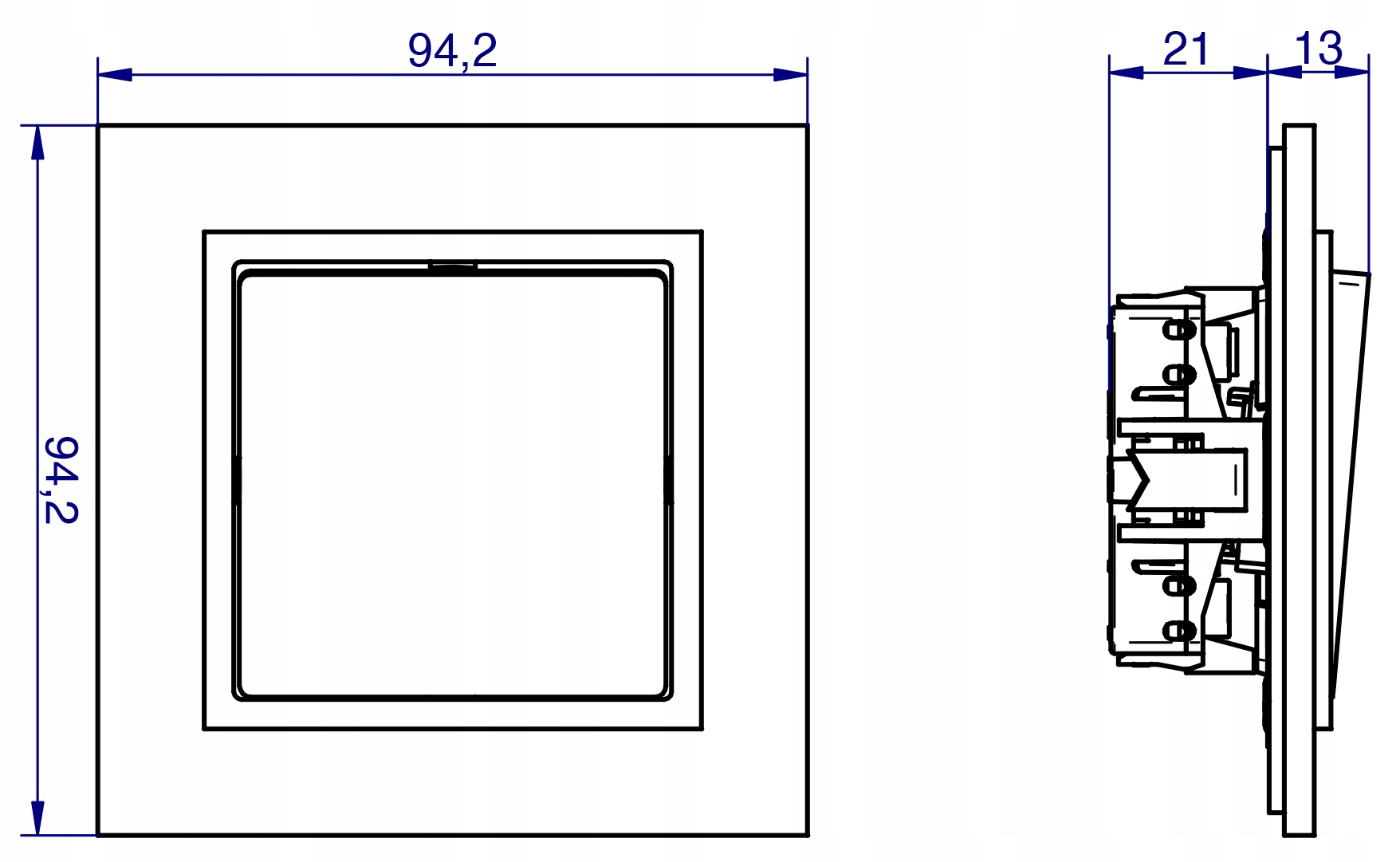 - Монтаж выключателя: коробка скрытого монтажа Ø60.