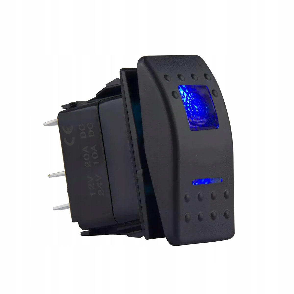 Высококачественный переключатель кожи на панели на панели на панели на панели на панели на панели на панели на панели на панели на панели на панели. Оборудован синей светодиодной подсветкой и герметическим корпусом с плотным классом ip66 . Идеально подходит для использования в сложных условиях - на яхтах, лодках, на автодомах, за пределами автомобилей. 34 x 21 mm