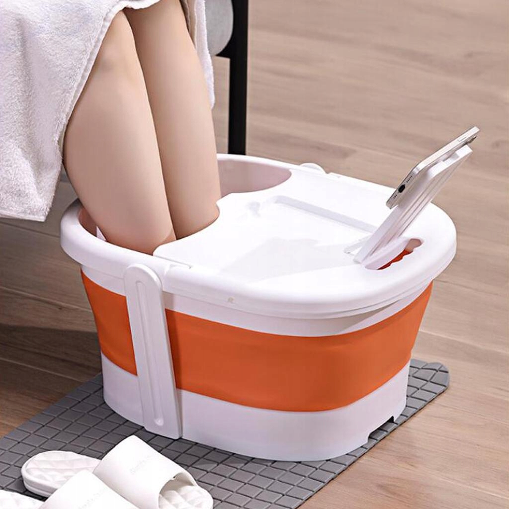 Переносной умывальник для ног с крышкой. Большая складная пластиковая ванночка для ног, оранжевая.