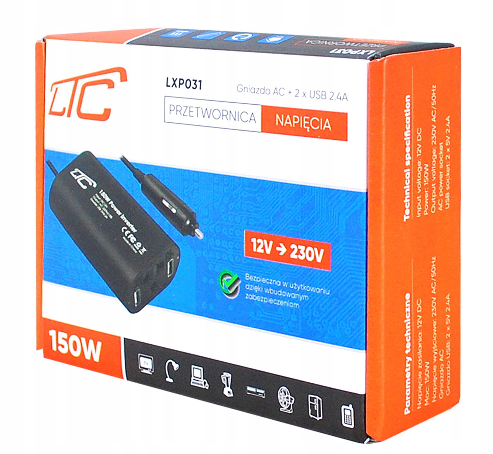 ПРЕОБРАЗОВАТЕЛЬ НАПРЯЖЕНИЯ LTC 12В/230В 150Вт 2xUSB