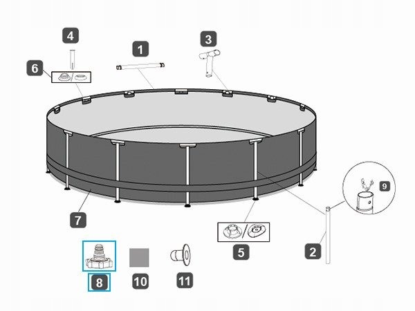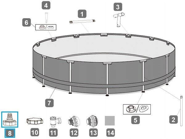для установки в дренажном отверстии Бестс бассейна на уровне земли, и с помощью садового шланга вы можете слить воду из бассейна, если это необходимо.