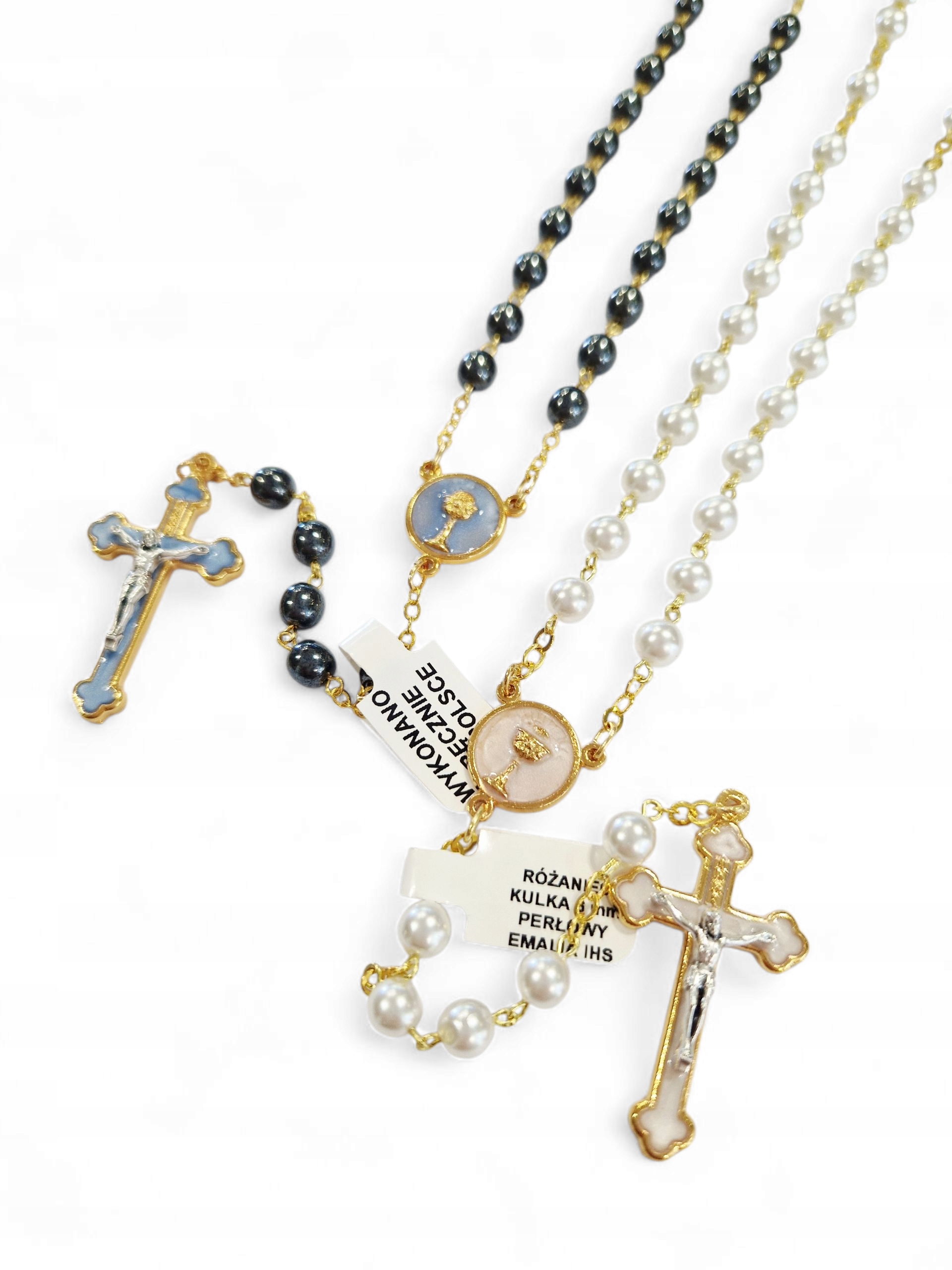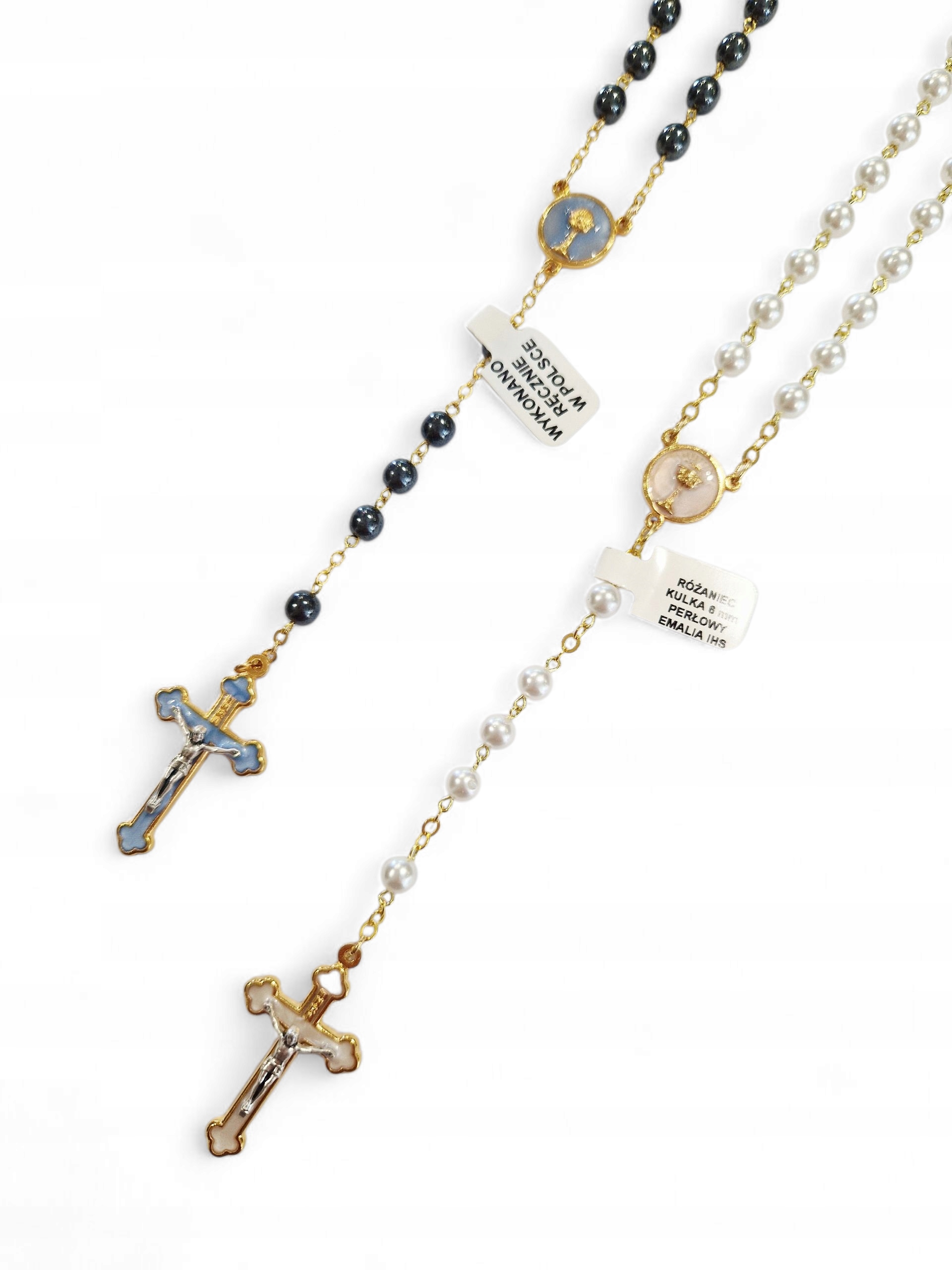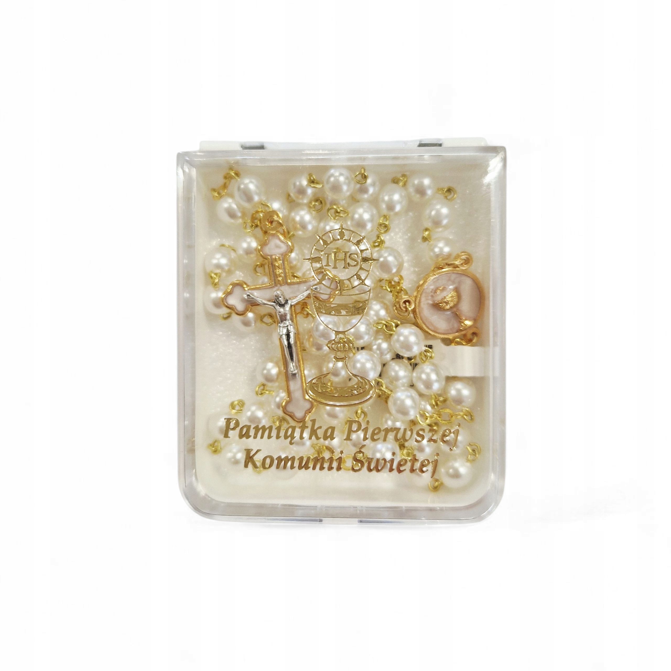 Жемчужные эмалированные четки в коробке сувенира и святого причастия. Польский продукт