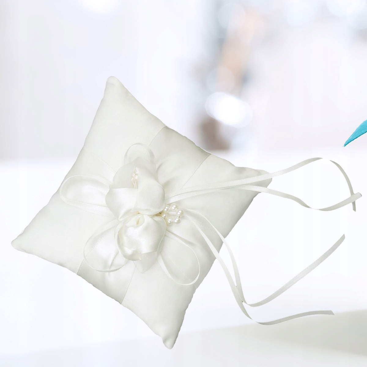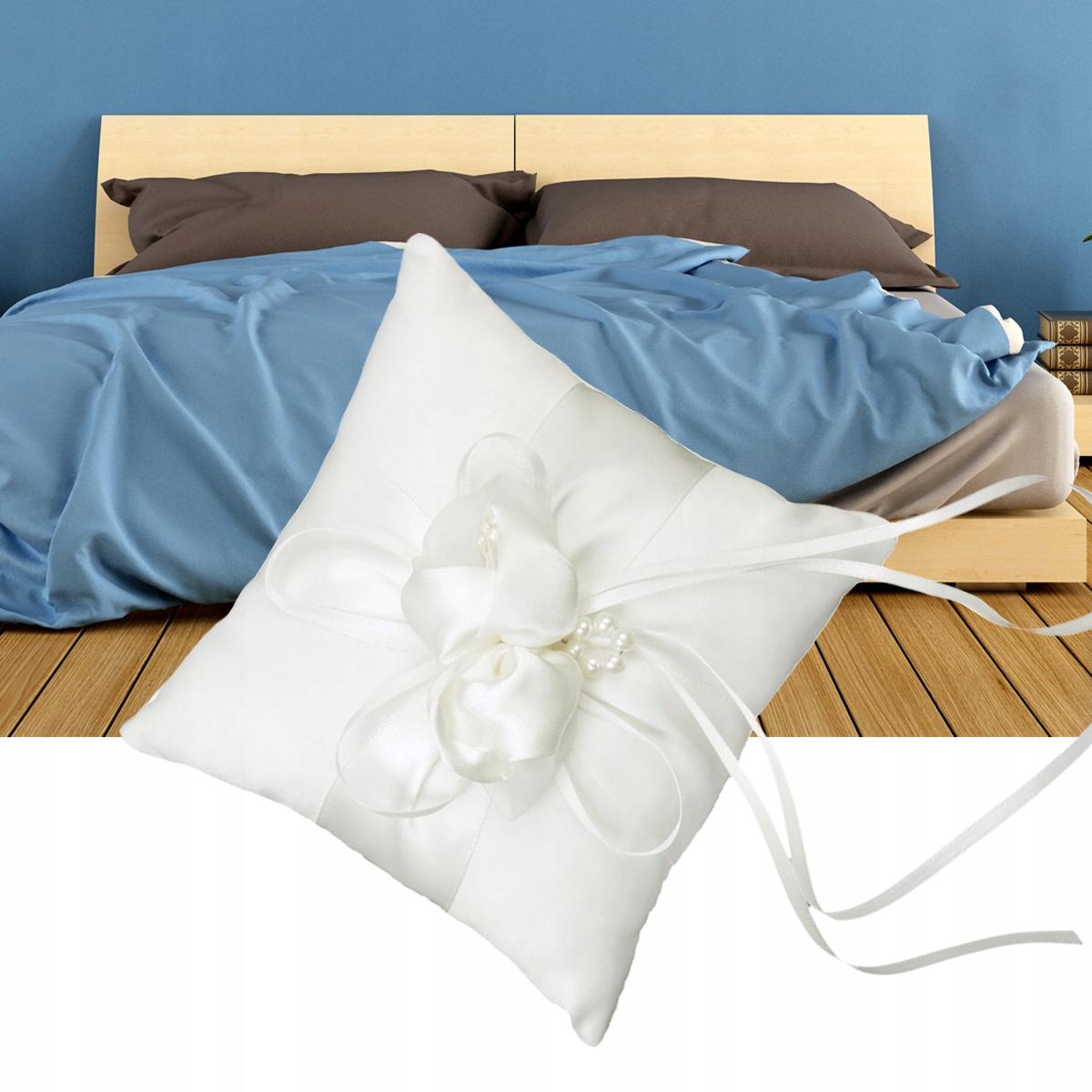 1*15*15 см, красивые бутоны цветов и искусственный жемчуг, свадебный декор, карманная подушка для свадебной церемонии с лентами (белая)
