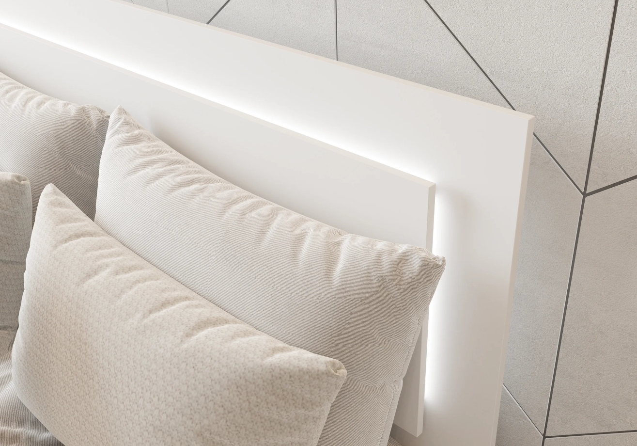 Кровать в подголовке установлено светодиодным освещением, которое добавляет элегантность и создает уютную атмосферу в спальне