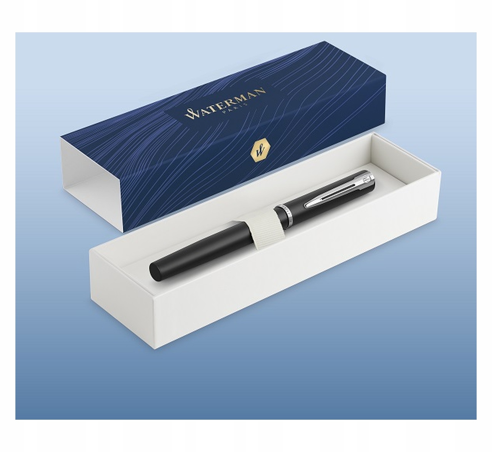 - Корпус и колпачок перьевой ручки Waterman Allure Black CT выполнены из металла и покрыт черным лаком.