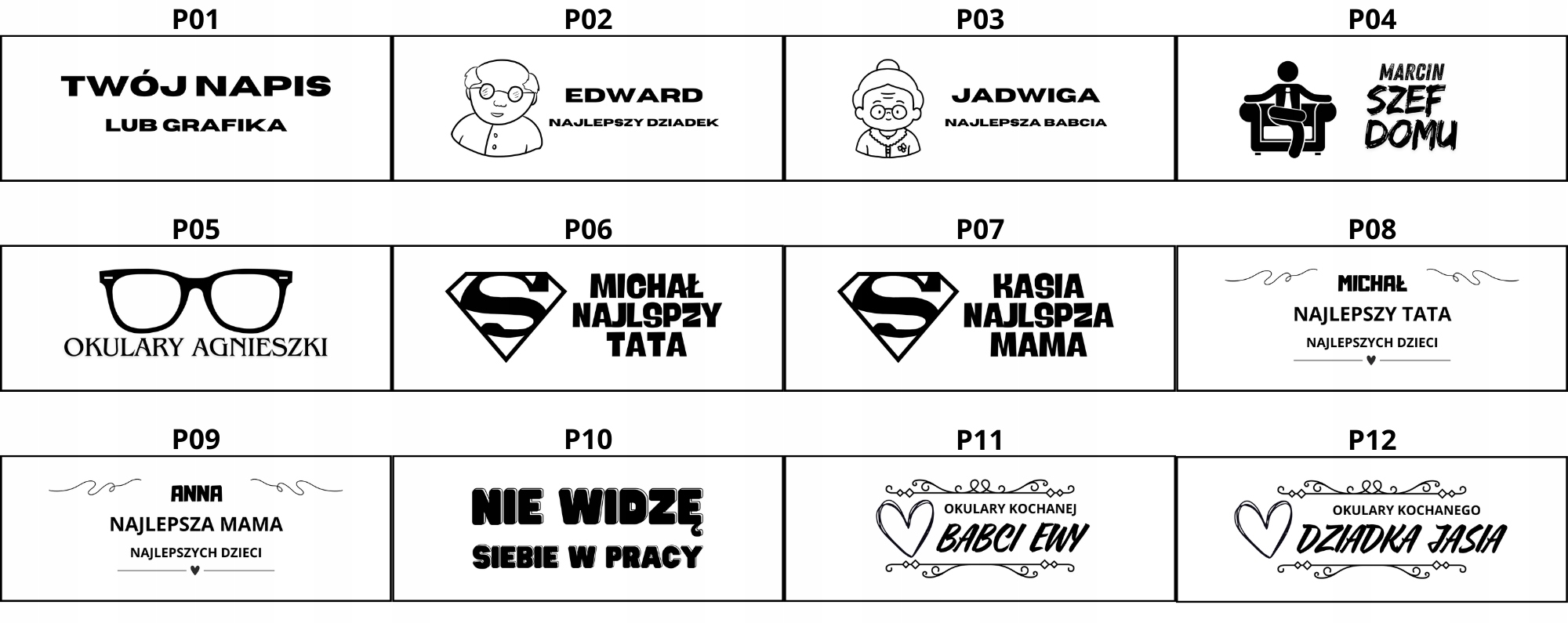напр. "Выбираю цвет №1, узор P04, имя Гжегож