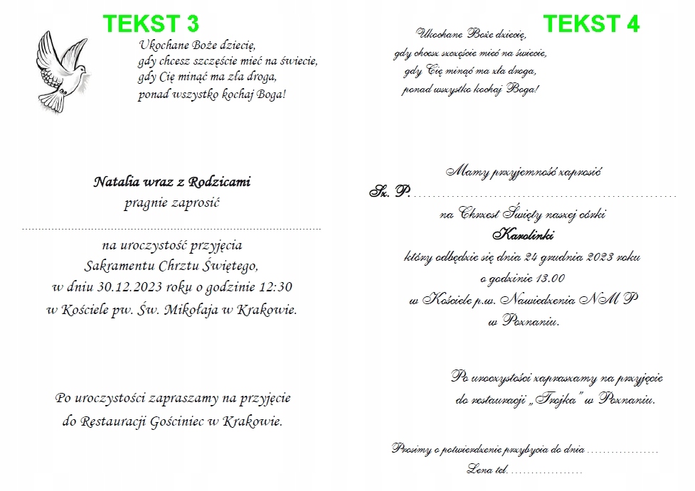 - один бесплатный проект приглашения, отправленный e -mail (для одного ребенка) - для следующего вы Нужно купить проект, это также относится к отдельным приглашениям для крестных родителей