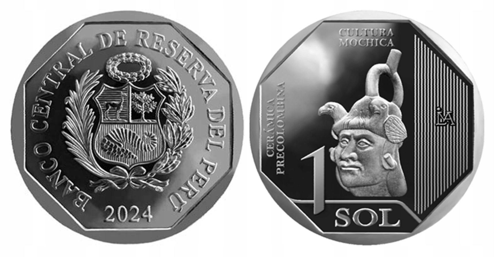 19 декабря 2024 г. Центральный банк резервов Перу (Banco Central de Reserva del Perú, BCRP) выпускала случайную монету перуанской предварительной серии керамики - культура Mochica