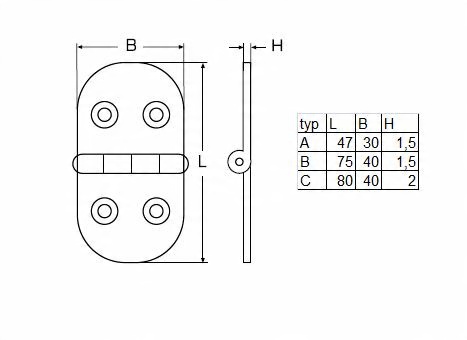 ПЕТЛЯ 8045C НЕРЖАВІЮЧА КИСЛОТОСТІЙКА 80X40X2.0 A2