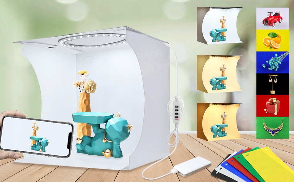< ul >Примечание: в этот пакет входит только мини-фотостудия и 6-кратный фон. Без игрушек, телефона, фотоаппарата, адаптеров, павербанков, цветов, моделей, украшений и прочих аксессуаров.
