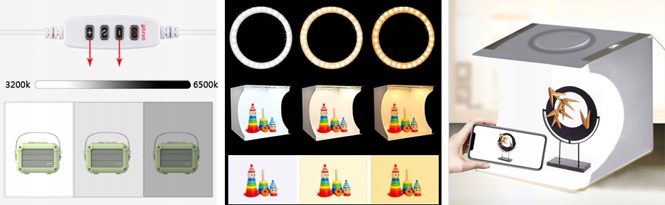 - Многофункциональный диммер: нажмите «+» или «-» ", чтобы изменить яркость от 1% до 100%. Вы можете выбрать 10 уровней скорости. Нажмите среднюю кнопку, чтобы изменить цвет света (белый, теплый, мягкий). Настроить свет так, чтобы он наилучшим образом соответствовал вашим фотографиям, очень легко.