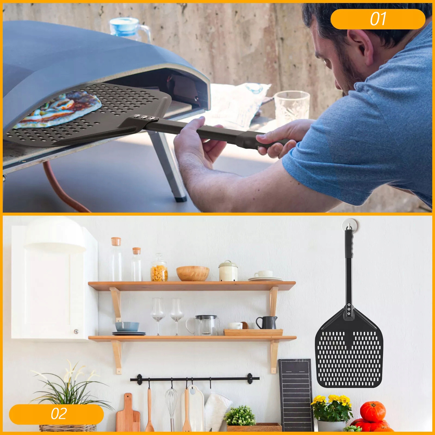 - Пицца лопата из твердой анодированной Твердый алюминий с прочным покрытием, предотвращая его, характеризуется прочной и твердой структурой, которая противостоит трудностям профессиональной пиццы.