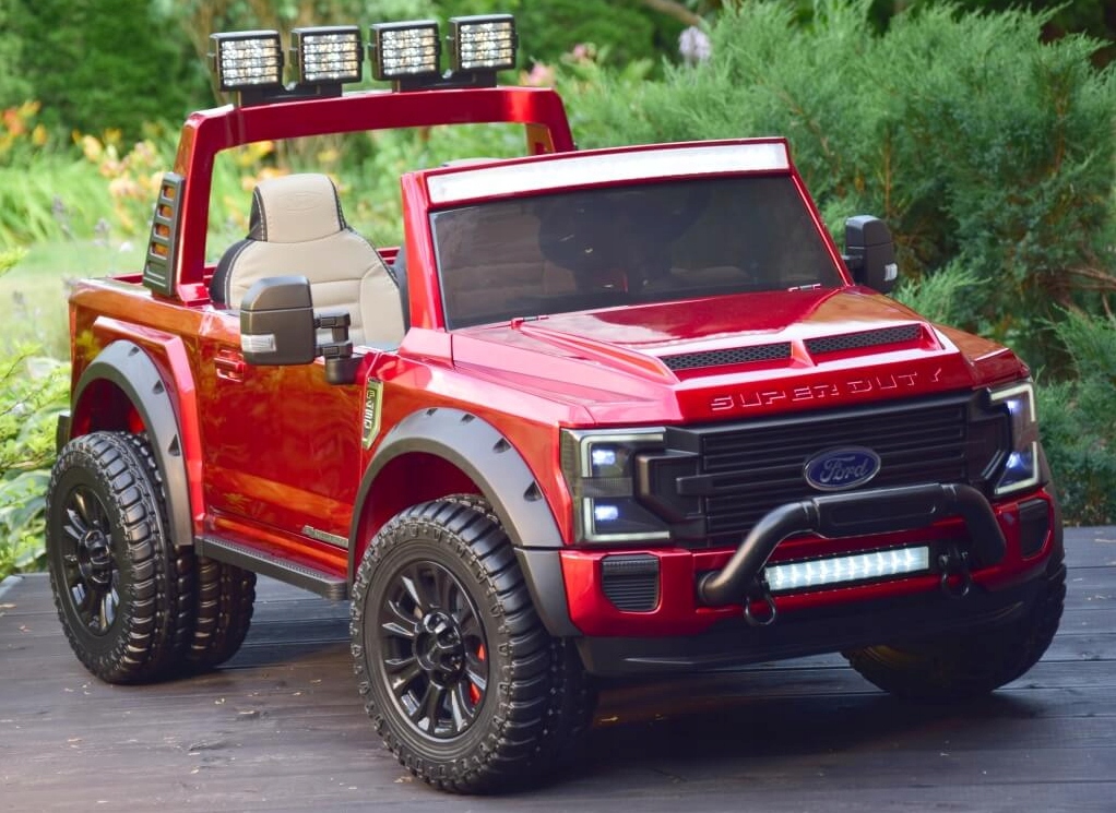 - мощный оригинальный лицензированный и богато оборудованный американский Picupup для батареи. Ford в версии Super Duty является крупнейшим контролируемым пикапом для самого молодого, версия улучшается в богатый интерьер, сильный, быстрый и гибкий, привод обеспечивается четырьмя мощными электродвигательными двигателями, включенными в батарею. Безопасные уроки вождения предоставляются пультом дистанционного управления дистанционным управлением 2,4 г, давая родителю полный контроль над транспортным средством.