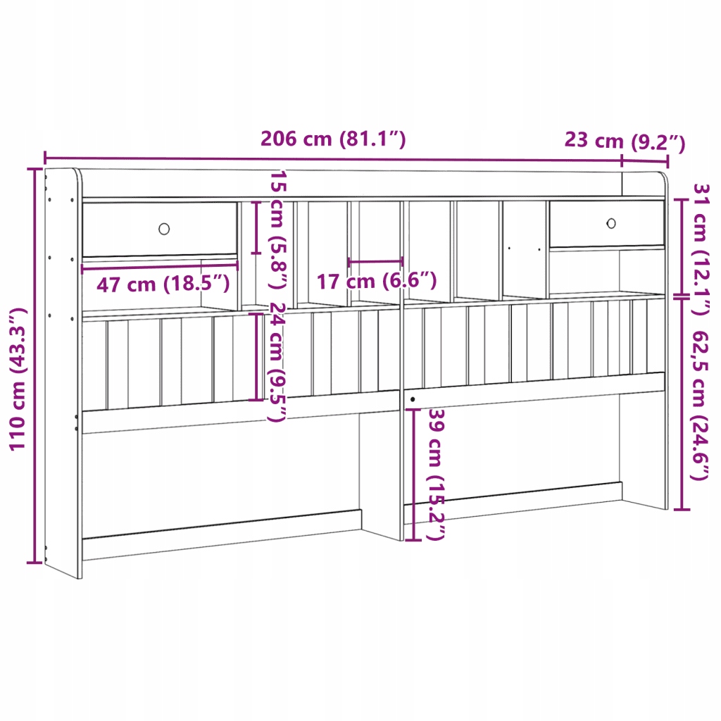 изголовье с перегородками и ящиками - Сплошная сосна древесина, 206 см