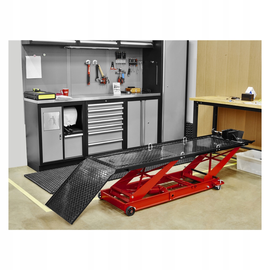 подъем с максимальной нагрузкой до 450 кг. Рампа (650 x 680 мм) облегчает подъем автомобилей на платформу. Благодаря рабочей поверхности с размерами 2060 х 550 мм, у вас есть много места для ремонта и технического обслуживания