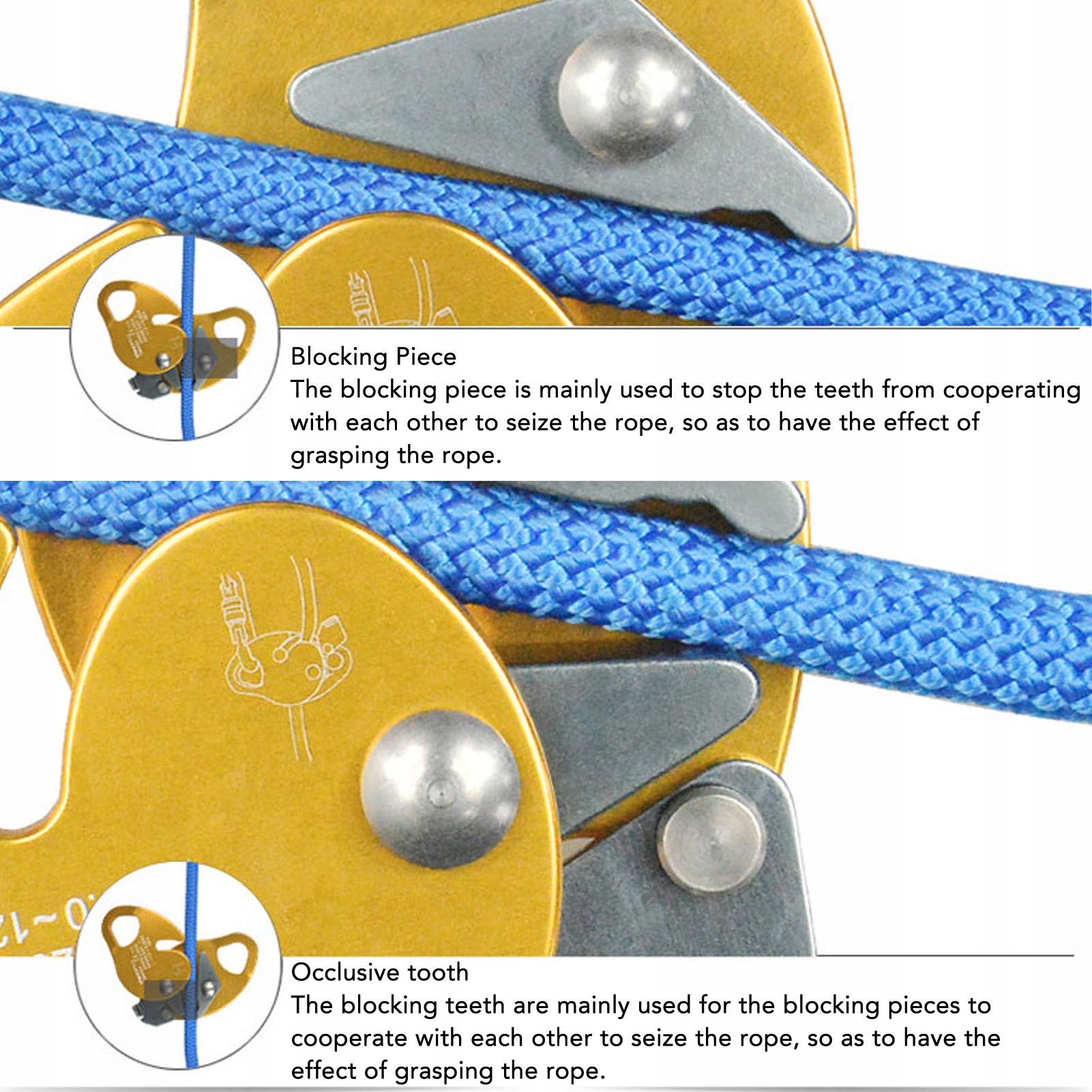 2. Блокирование зубов и кусочков: используйте трение между веревкой и стальной пластиной, чтобы помочь вам безопасно подняться или спуститься. Веревка блокируется заблокированием зубов и блокирующими элементами, чтобы получить эффект захвата веревки.