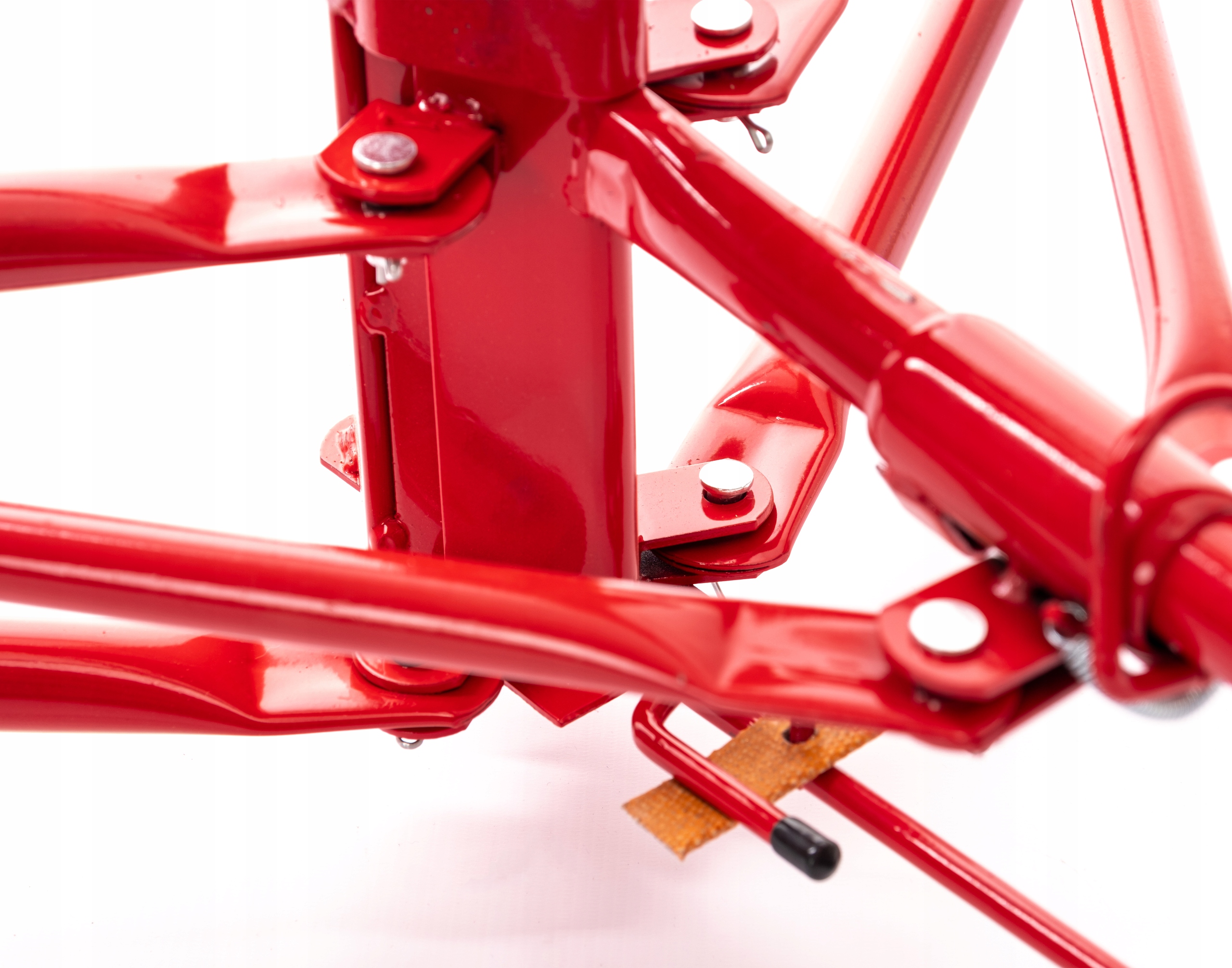 Устройство покрыто защитным красным покрытием. Используемая система шкивов обеспечивает плавное и точное управление подъемом. Замок срабатывает автоматически, > что предотвращает случайное опускание поднятой пластины.