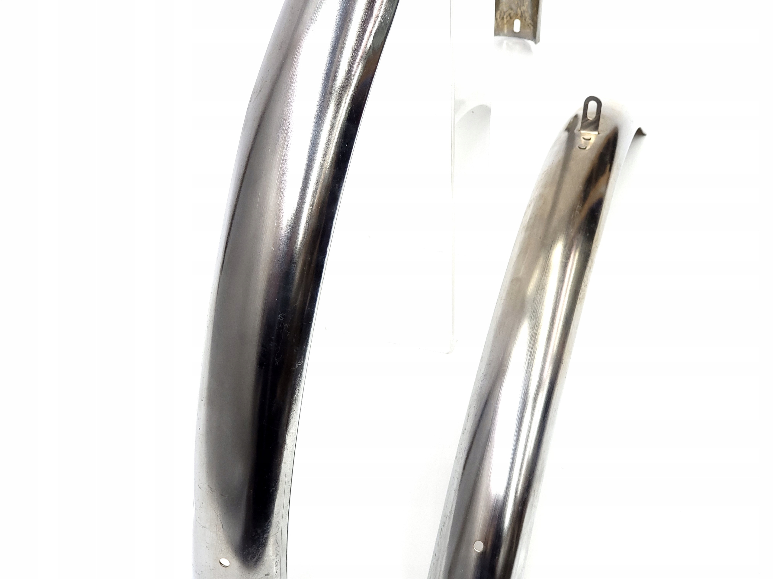 Предлагаем комплект передних и задних брызговиков 27х1 1/4 дюйма для велосипедов Romet Wagant Gazela Universal Kometa и др. производства Польской Народной Республики. ДЕФЕКТ: крылья новые, но погнутые.