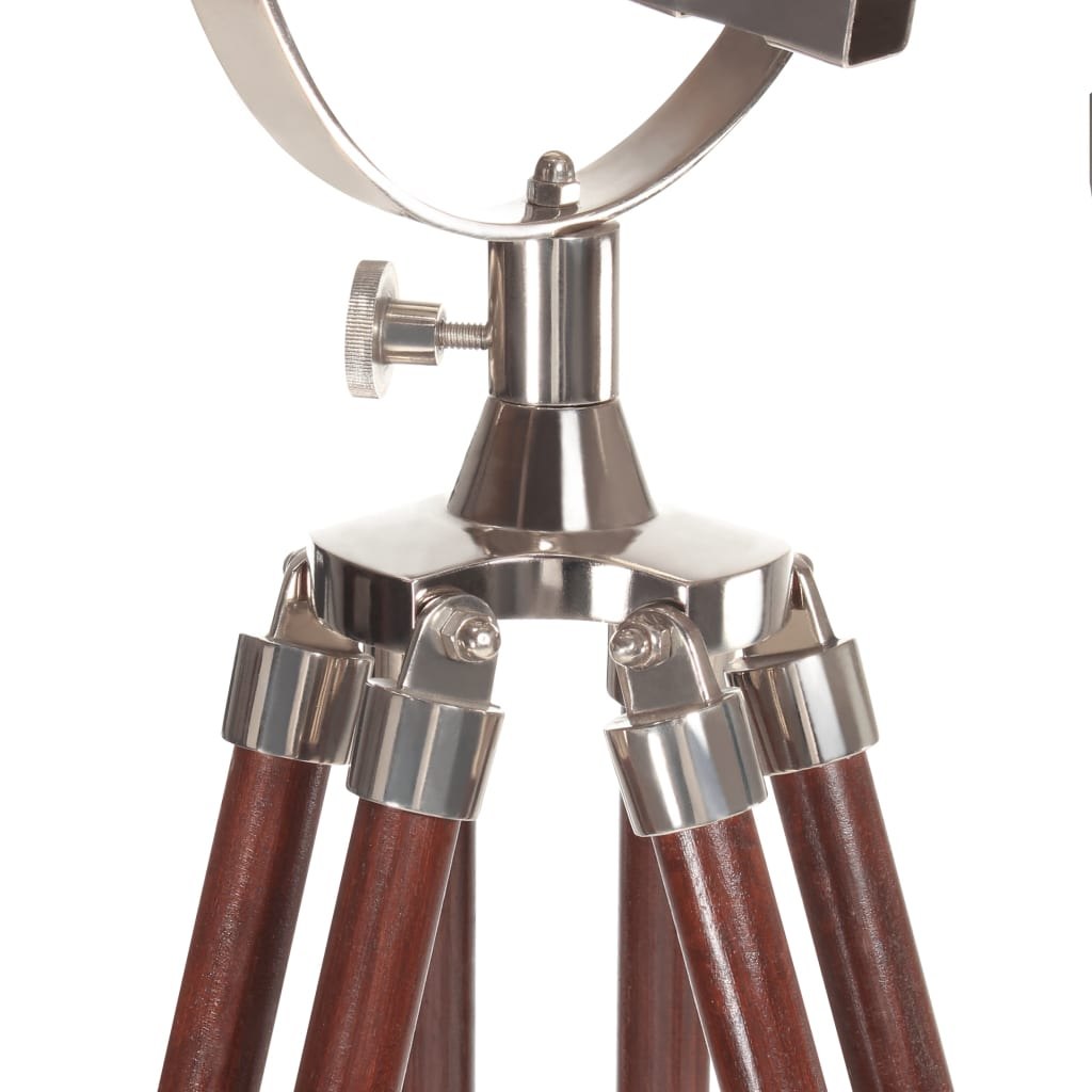 наклонный, вращающийся, стальной абажур с серебряной отделкой рассеивает теплый и капризный свет. Сплошные ножки изготовлены из твердой манговой дерева с коричневой отделкой, обеспечивая стабильную обстановку. Кроме того, высота лампы может быть отрегулирована в зависимости от потребностей в диапазоне от 120 до 180 см. Лампа в голливудском стиле легко установить.