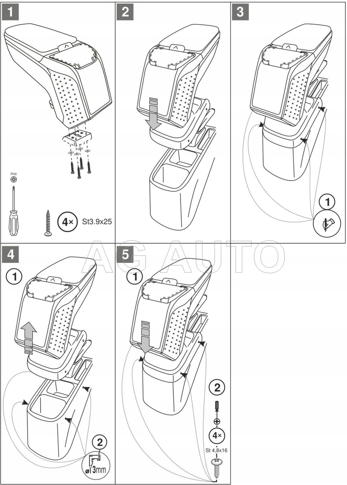 Сборка подлокотника очень проста, и нет необходимости посещать автомобильное обслуживание. Руководство по руководству и винты сборки включены в набор. Нижняя часть подлокотника - адаптер, который видит к среднему туннелю, изготовлена под формой определенной автомобильной модели, поэтому он всегда подходит идеально. Это не универсальный адаптер!