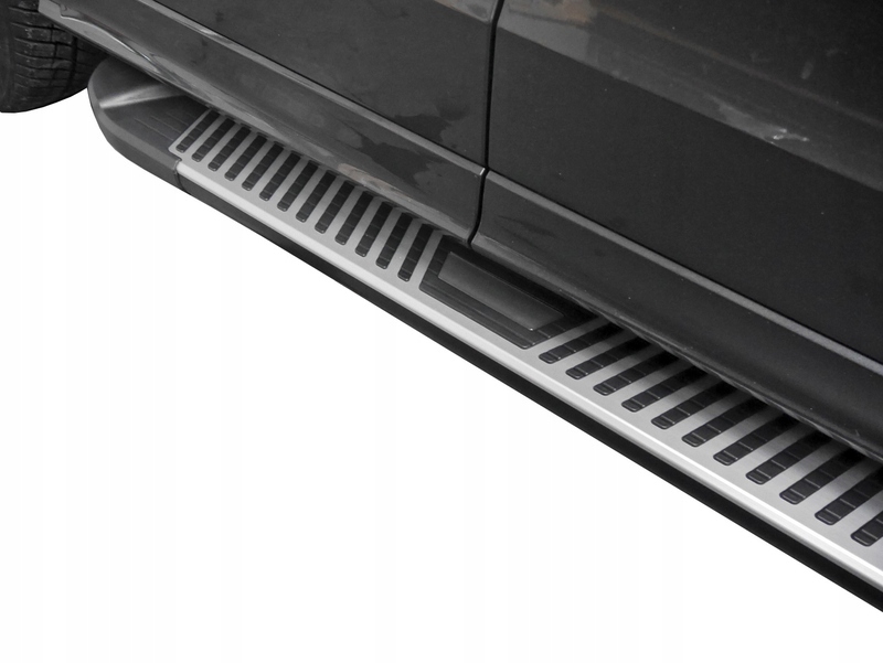 Ступени прекрасно подчеркивают внешний вид автомобиля, облегчают посадку-высадку и защищают кузов от царапин. Они изготовлены из алюминия и АБС-пластика.