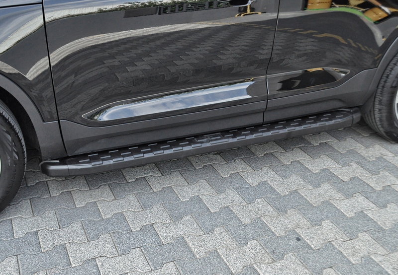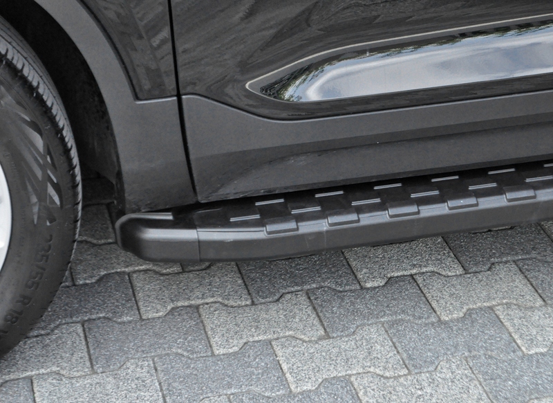 Ступеньки прекрасно подчеркивают внешний вид автомобиля, облегчают посадку-высадку и защищают кузов от царапин. Они изготовлены из алюминия и АБС-пластика.