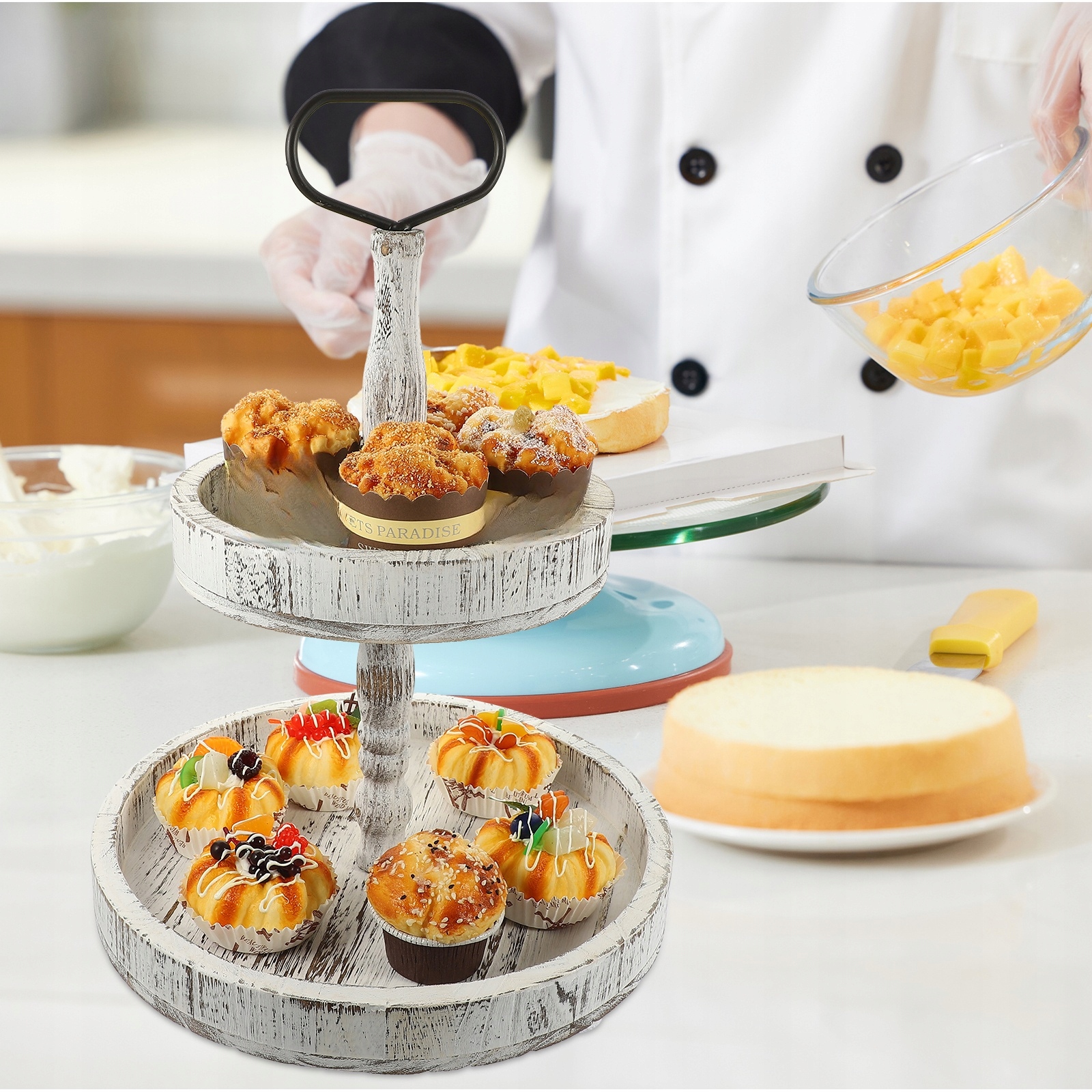 ✅Это двухслойная конструкция, и вы можете размещать различные на нем раскрываются вкусы тортов, кексов и закусок.