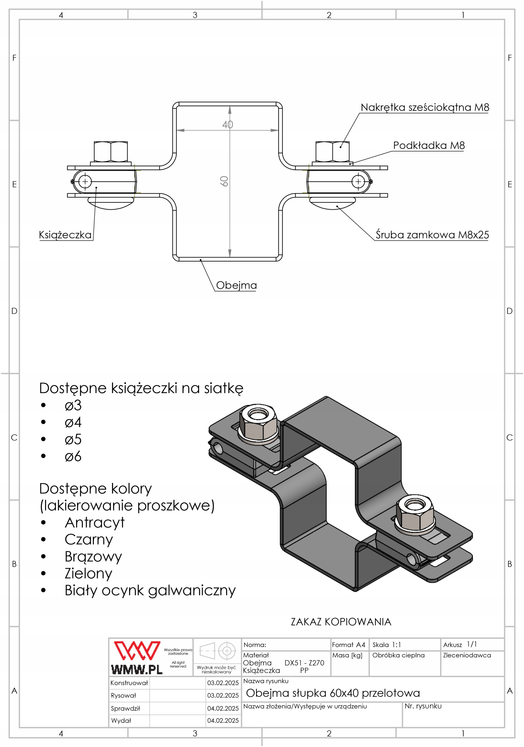 промежуточный зажим для Fi -4 40x60 мм панели забора черный цвет