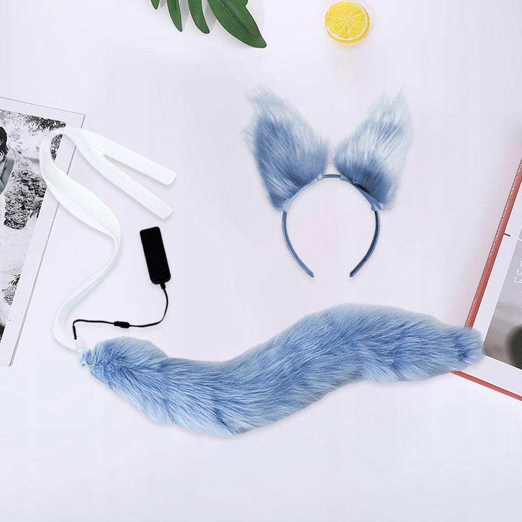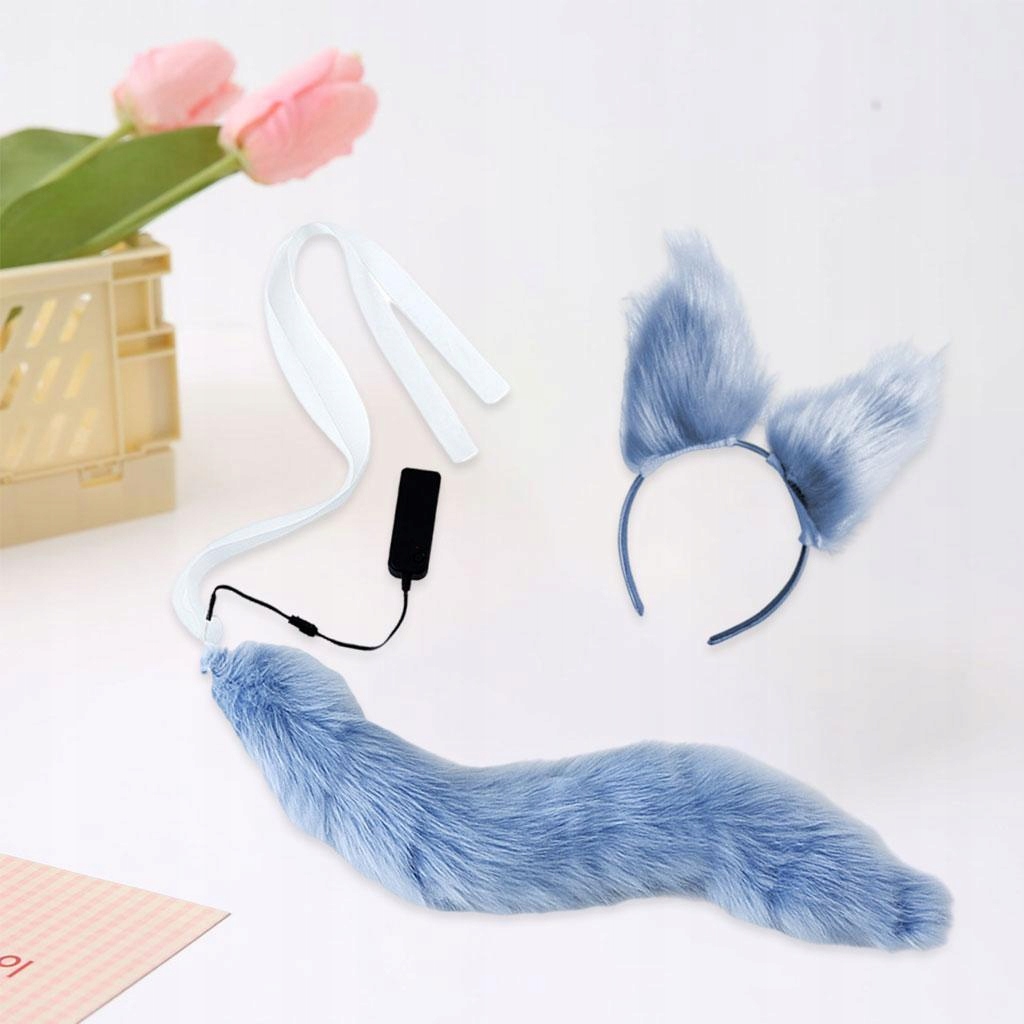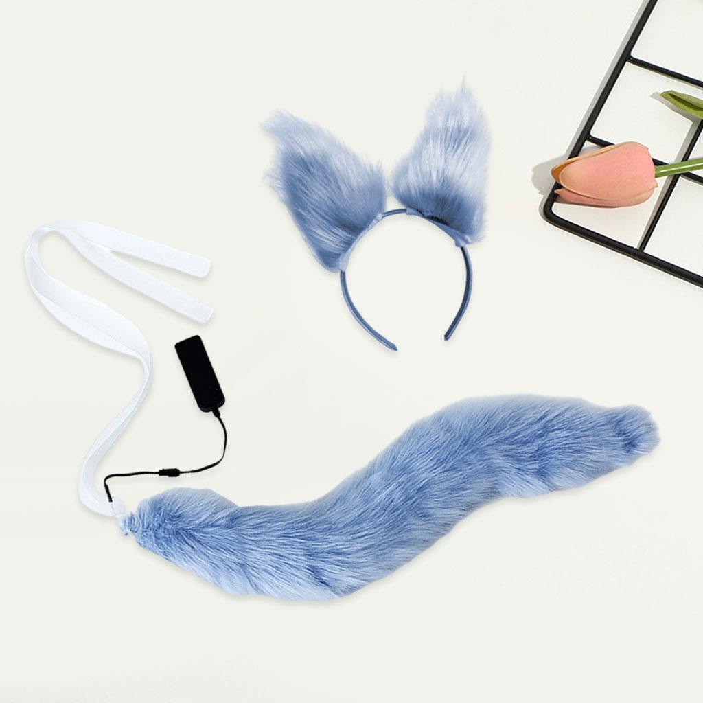 Набор на голову с накладной лисой и хвостом, светодиодный светящийся реквизит для ролевых игр, синий реквизит