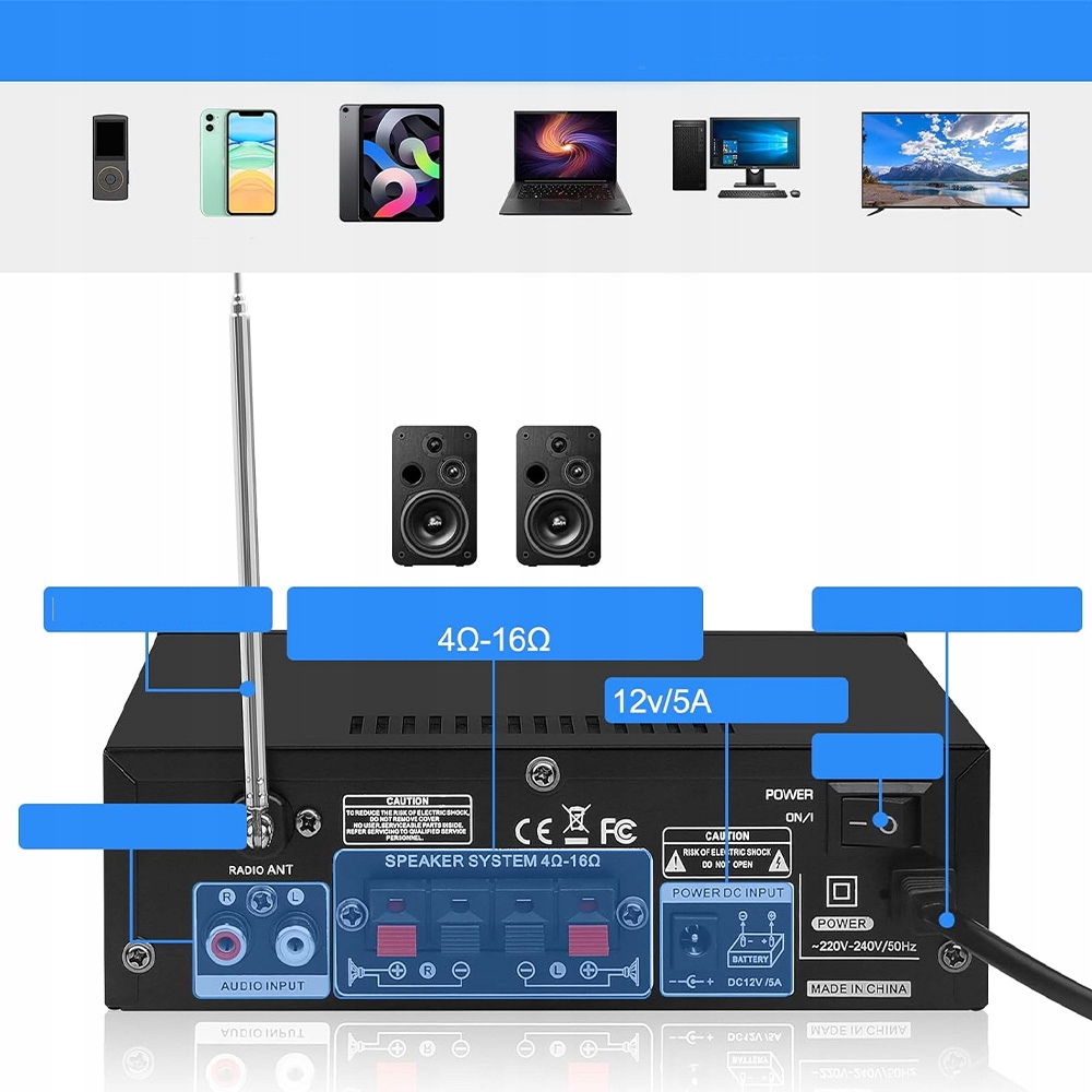 Наслаждайтесь чистым и чистым звуком со стереоэффектом RMS 50WX2/MAX 400WX2 от этого небольшого усилителя BT. Идеально подходит для караоке, домашнего кинотеатра и акустических звуковых систем. Идеально подходит для небольших квартир, спален, офисов, подвалов и гаражей. Компактная конструкция легко подходит для полки или в шкафу A/V.