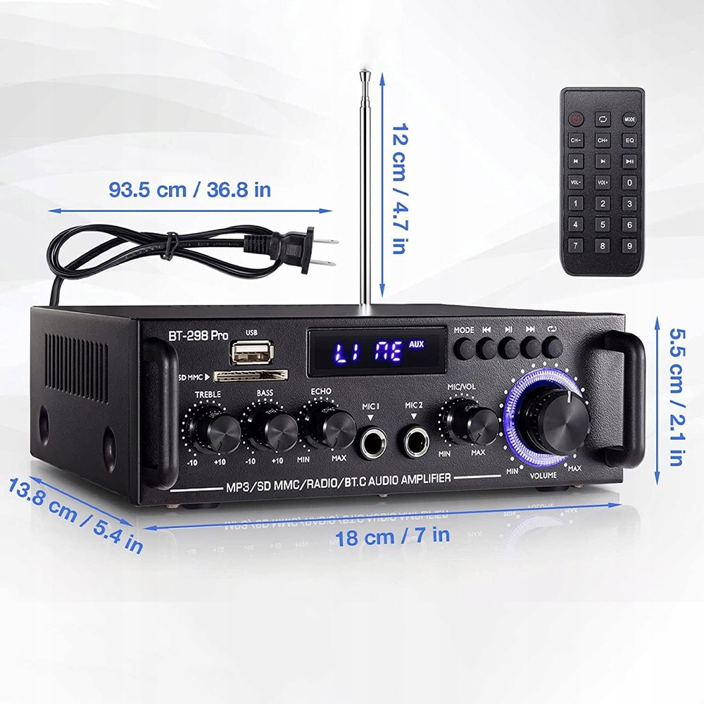 Усилитель BT-298PRO, домашний стереосивер с Bluetooth 5.0, с пультом дистанционного управления