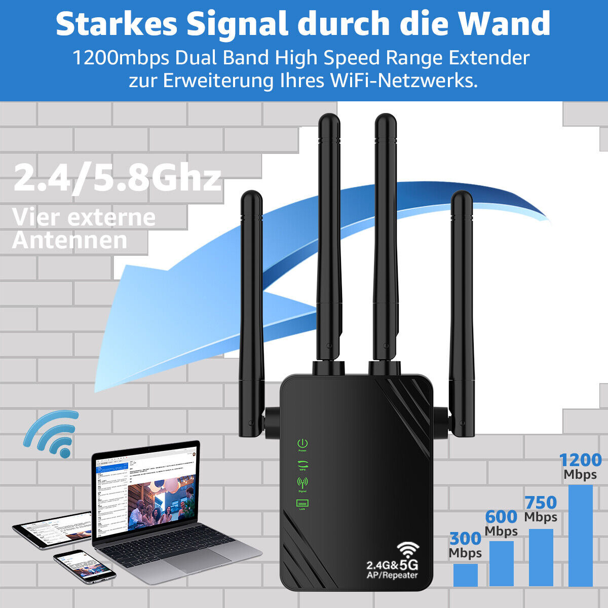 【Два -высокая скорость AC1200 AC1200】 Благодаря обновленной технологии двух -листовки, этот усилитель сигнала Wi -Fi может автоматически выбрать высококачественную полосу для лучшей производительности. Усилитель сигнала домашнего сигнала WiFi может обеспечить до 300 МБ/с для 2,4 ГГц и 876 МБ/с для 5 ГГц. Благодаря скорости до 1200 МБ/с, вы можете наслаждаться быстрой сетью во время работы, игры в игры и слушать музыку и фильмы.