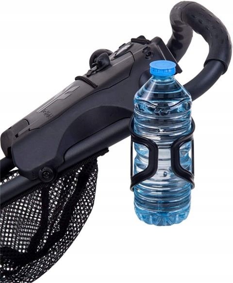 Держатель изготовлен из гибкого пластика и крепится с помощью монтажного зажима. Держатель вмещает бутылку или чашку максимальным диаметром 9 см.