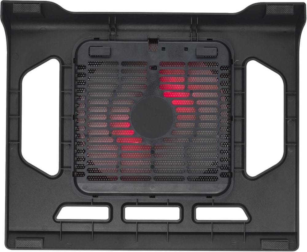 Изделие оснащено большим вентилятором с красной подсветкой. Вентилятор гарантирует очень хорошее охлаждение 17,3-дюймовых ноутбуков. Подушка эффективно ограничивает нагрев устройства, что приводит к его лучшей производительности и более стабильной работе. Он также обеспечивает отличную циркуляцию воздуха.
