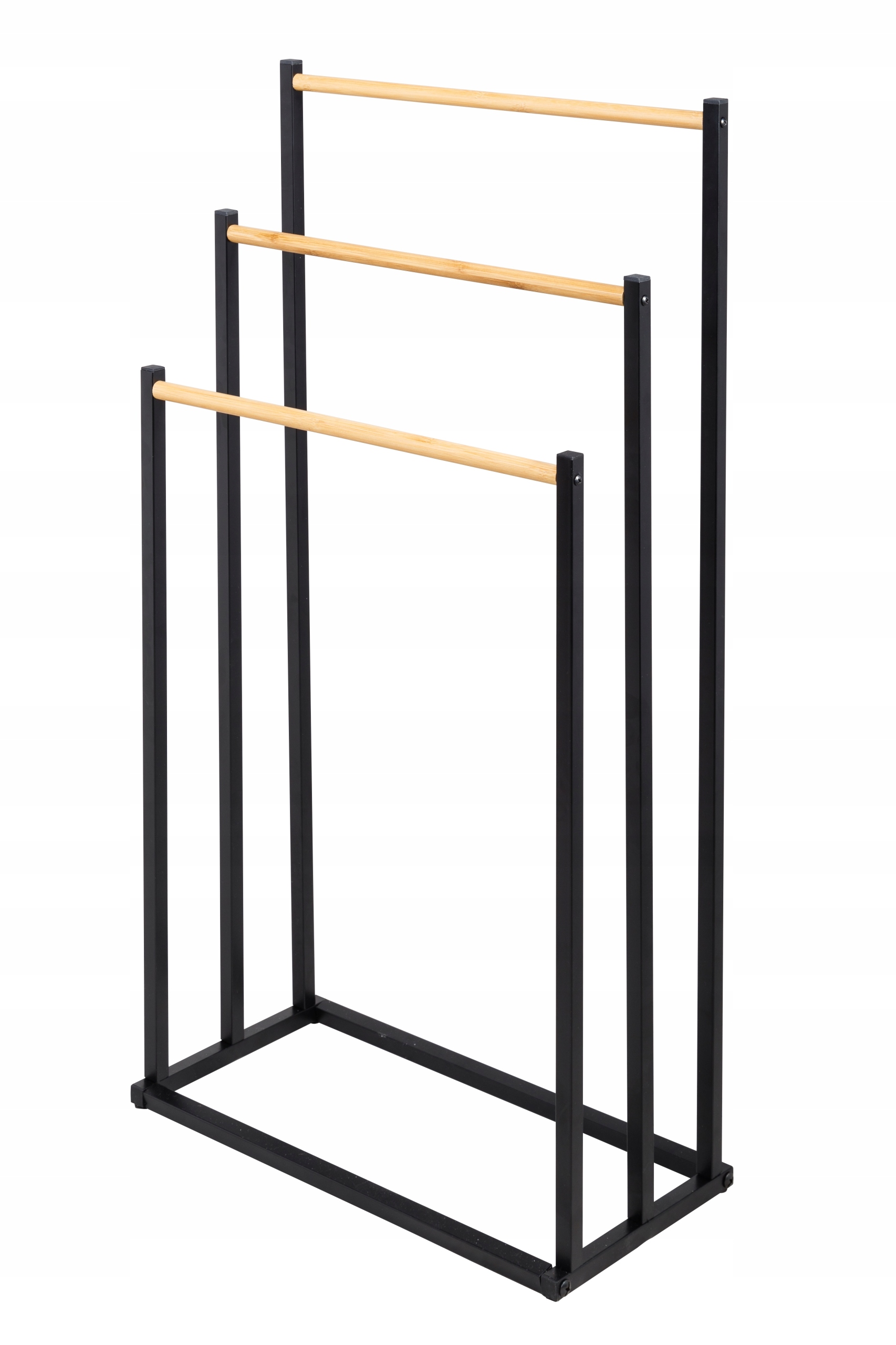 Вешалка для полотенец 3-рычажная, МЕТАЛЛ + БАМБУК, ЧЕРНЫЙ