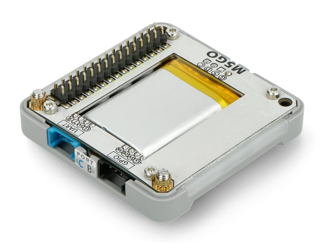Батарейный отсек M5GO оснащен встроенным Li-Pol аккумулятором емкостью 500 мАч. В сочетании с зарядной станцией M5GO он создает профессиональное зарядное устройство для модулей разработки серии M5Stack Core. Стенд оснащен аналоговым микрофоном, светодиодной лентой и двумя дополнительными портами HY 2.0 (PORT B и PORT C).