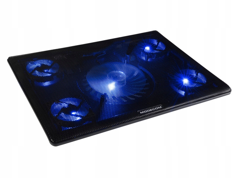 Помимо фантастического дизайна, подставка MODECOM MC-CF15 отличается бесшумной работой благодаря установленному 140-мм вентилятору с технологией SILENT FAN. Этот очень тихий вентилятор предотвращает перегрев ноутбука, а его работу поддерживают четыре дополнительно установленных 70-мм вентилятора. Все это дополняет впечатляющая синяя светодиодная подсветка.
