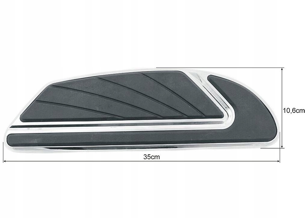 Подножки металлические, хромированные с черными резиновыми вставками.