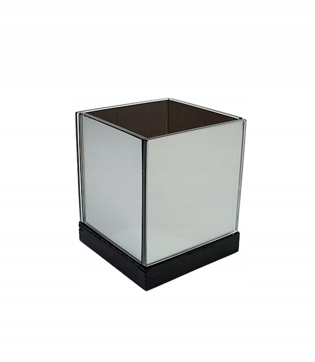 Зеркальный 3D подсвечник изготовлен вручную в нашей мастерской с нуля. Дно изготовлено из сосны, окрашенной в черный цвет. Абажур выполнен из зеркала. Подсвечник имеет размеры основания 8х8 см и общую высоту с абажуром 9,5 см. Подсвечник одинарный на одну чайную свечу.