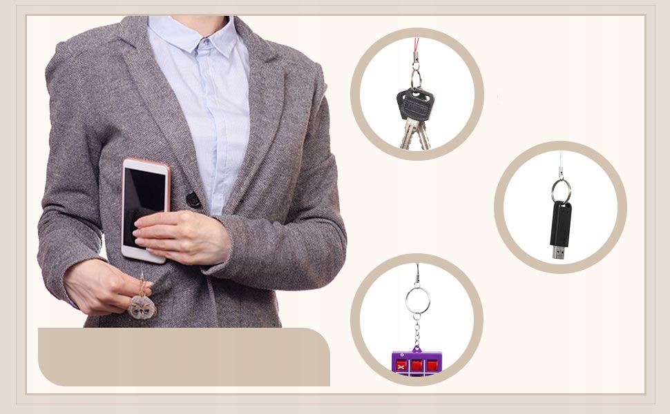 Маленькое и портативное: Внешний диаметр разрезного кольца составляет 8 мм, а длина ремешка составляет около 6 см. обычный размер для повседневного использования