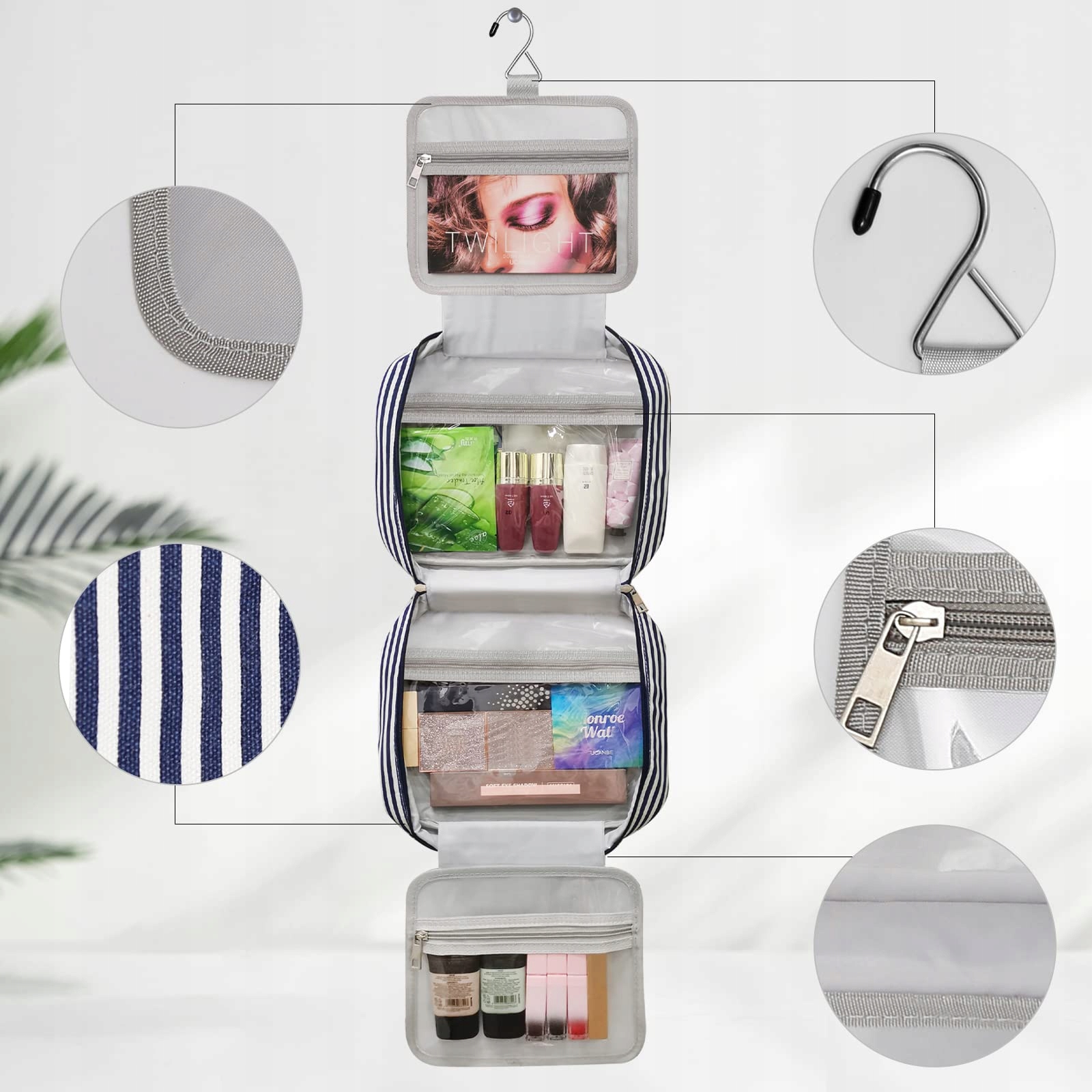 - Косметичка имеет прочный крючок, позволяющий повесить набор туалетных принадлежностей на вешалку для полотенец и т.п.