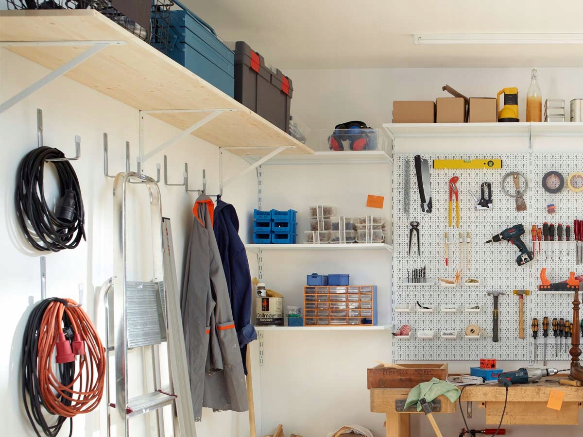 Вы ищете способ организовать вещи в гараже или другой комнате. Настенные полки — идеальное решение.