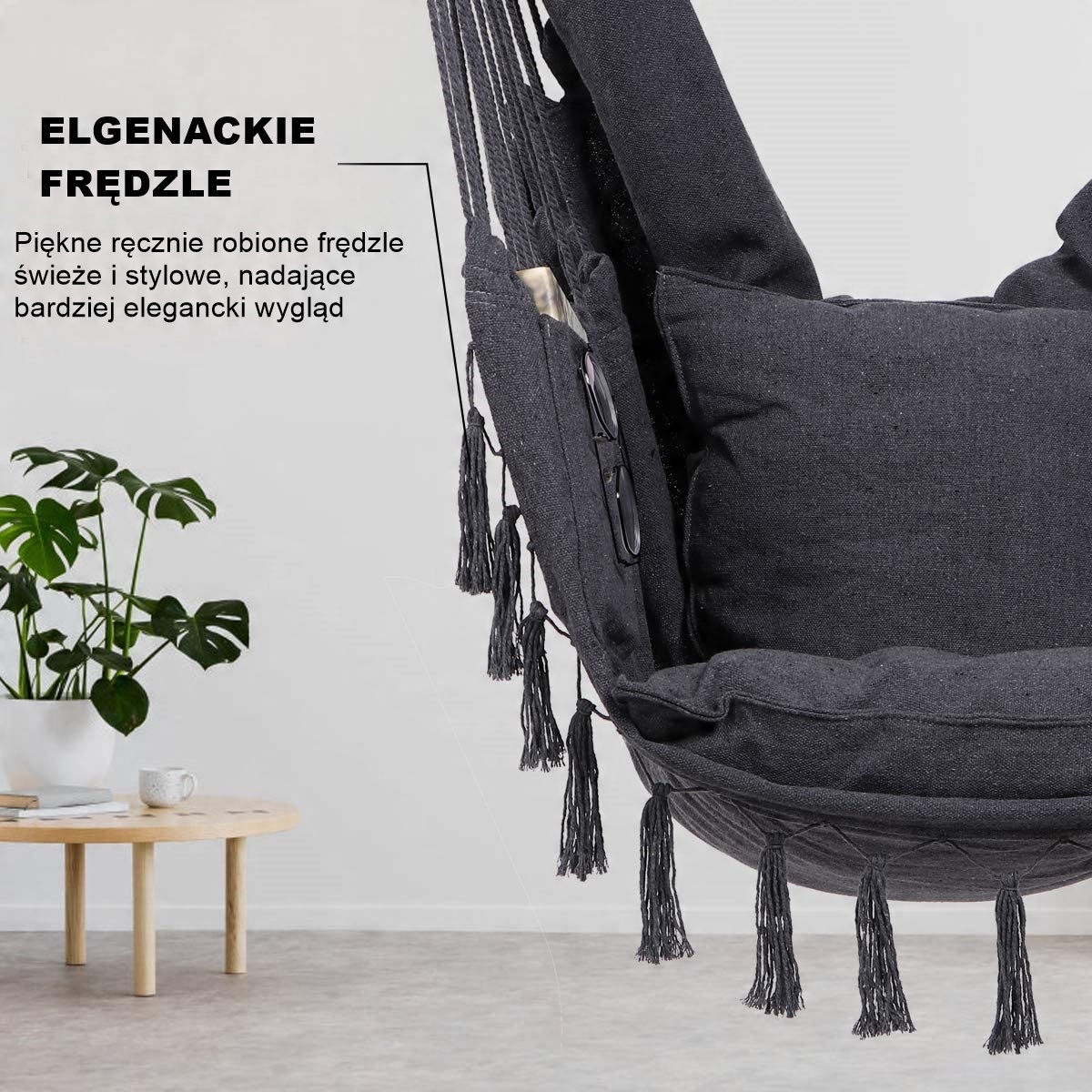 - Сидя на подвесном кресле, подвешенном на джутовой веревке, вы можете чувствовать себя уверенно, вы расслабитесь на 100% после целого рабочего дня.