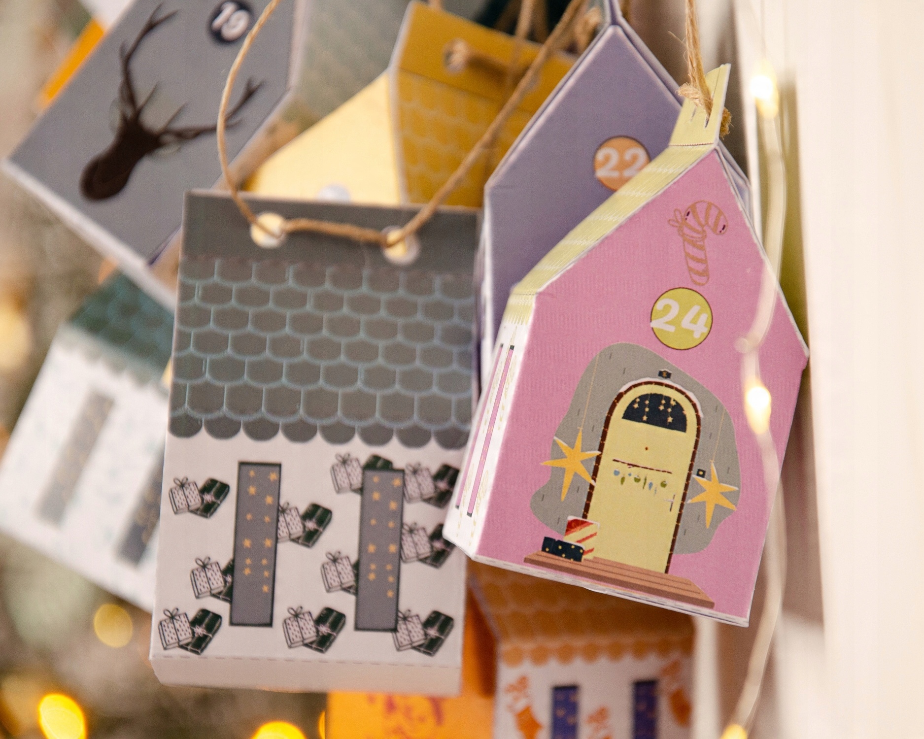 Красивый адвент-календарь с подвесными домиками - собрать самому.