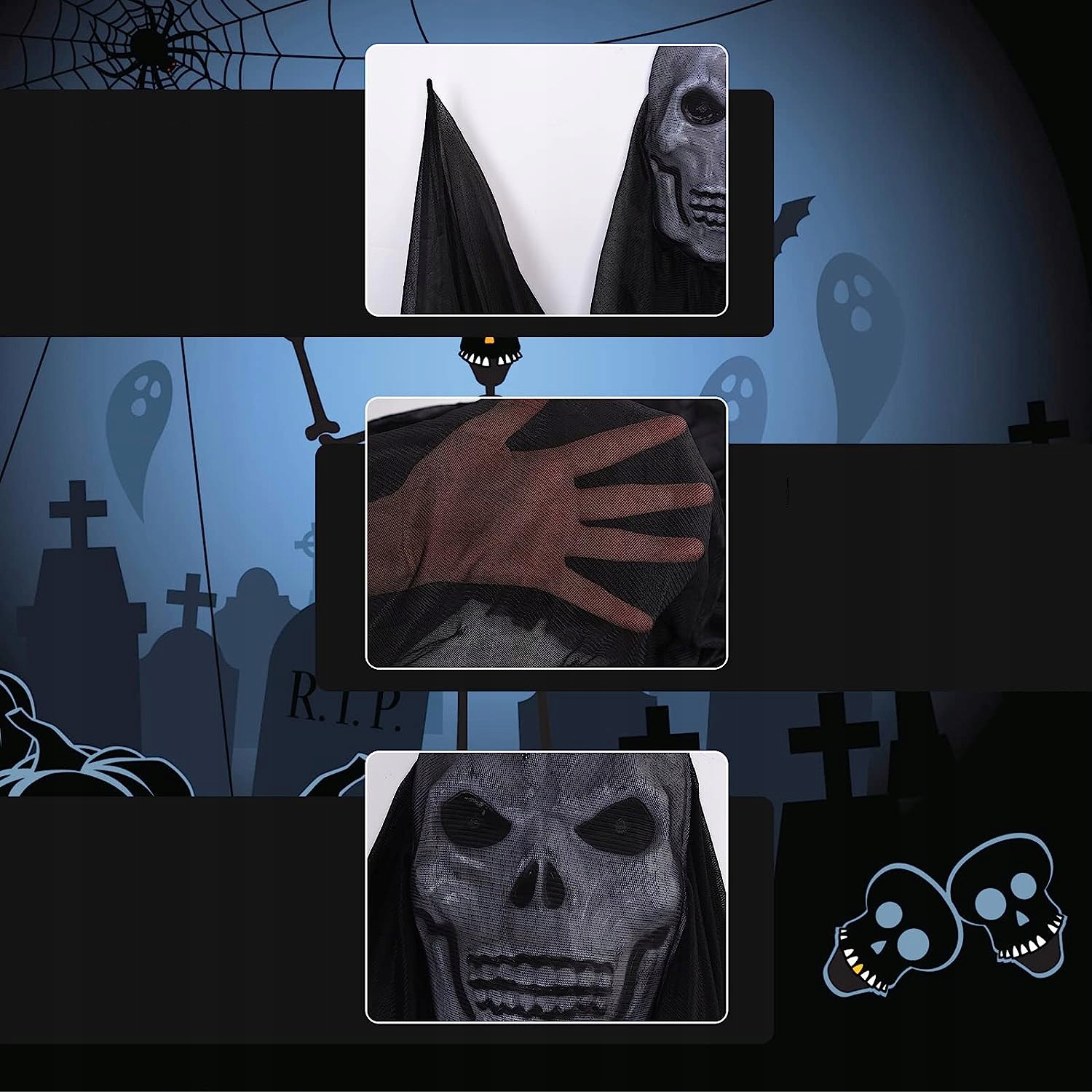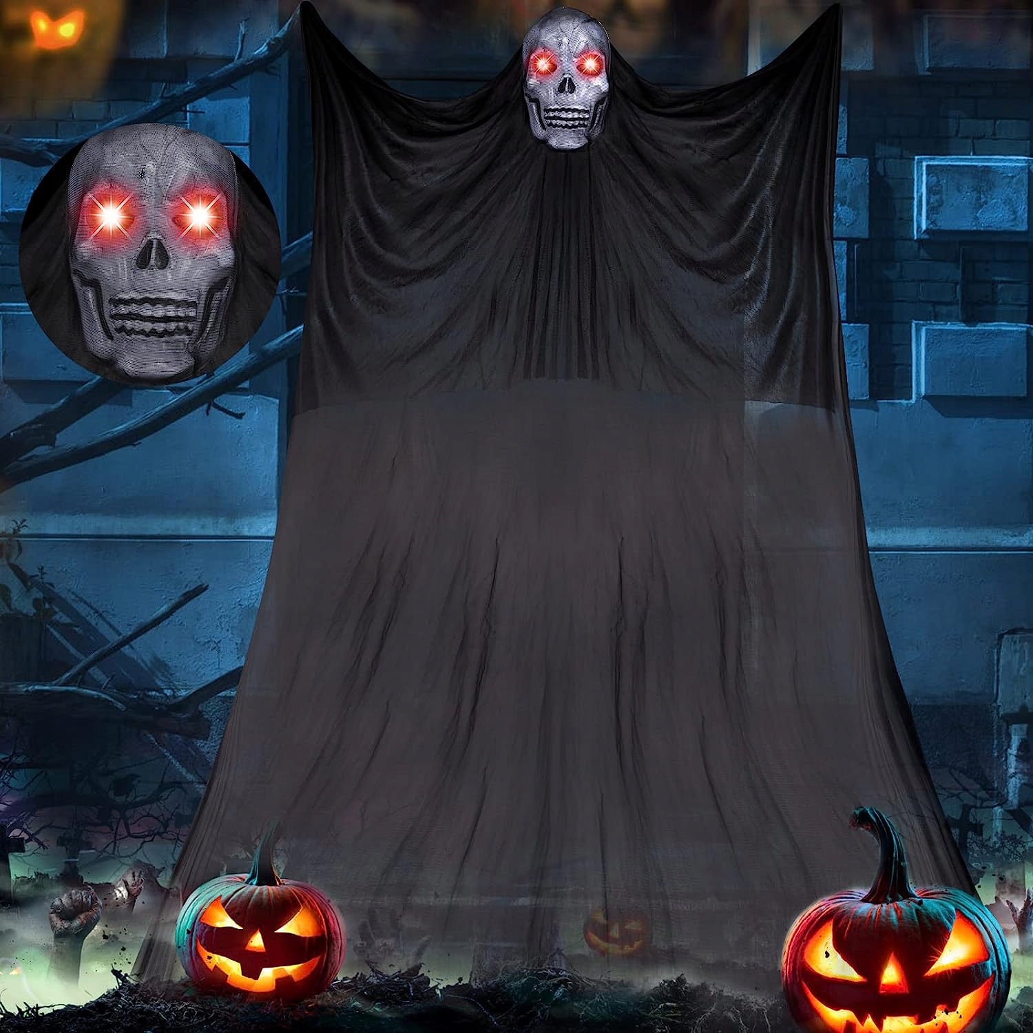 3. Призраки в длинных противогазах с черепом залетят внутрь, когда ветер дует посреди ночи, создавая жуткую атмосферу и даря вашим соседям незабываемые впечатления от Хэллоуина.