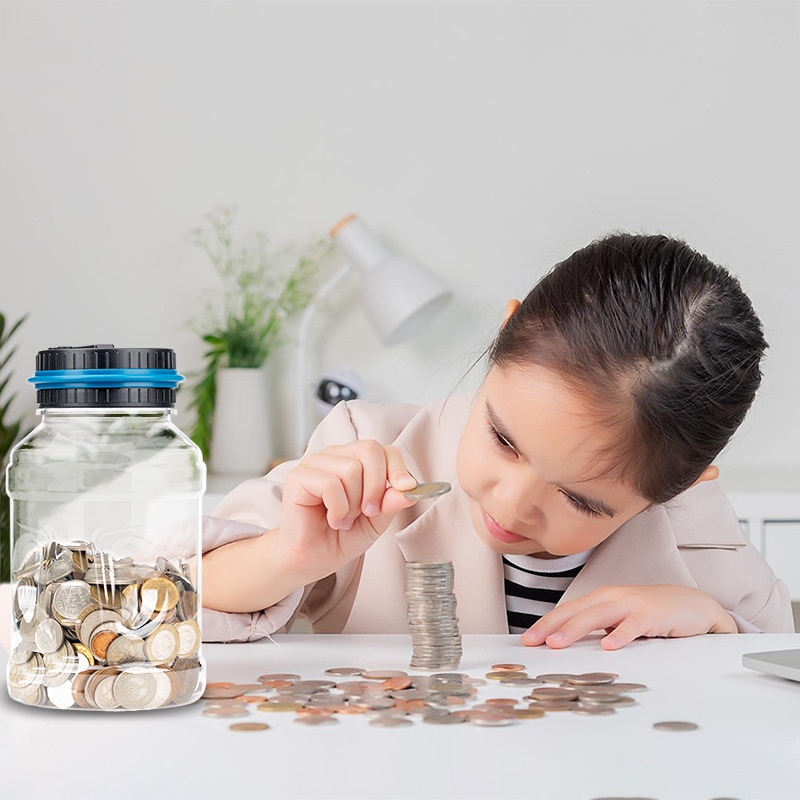 ✨【 Прозрачный дизайн Вы можете принять все евро монеты в кровообращении. Максимальная емкость составляет 1,8 литра. Он может вместить около 800-1000 монет. Если вы вносите 1 монету в день, ее можно использовать не менее 2 лет.